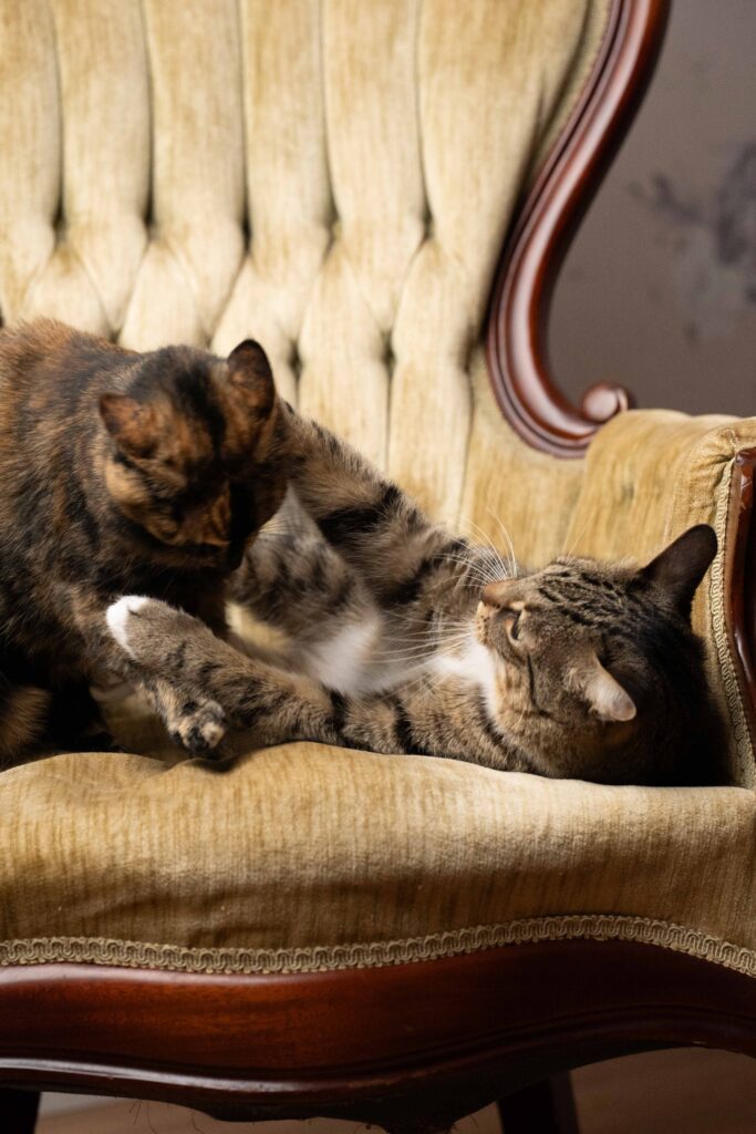 Hanging out with my goofball family is my absolute favorite thing to do. They choose not to be on the internet so here is a photo of my kitties fighting over their favorite chair instead.