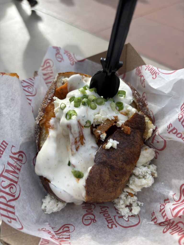 - Buffalo Chicken Stuffed Potato – Fine but not worth what we paid for it. My husband said it was too much unflavored potato and not enough of the yummy stuff on top.